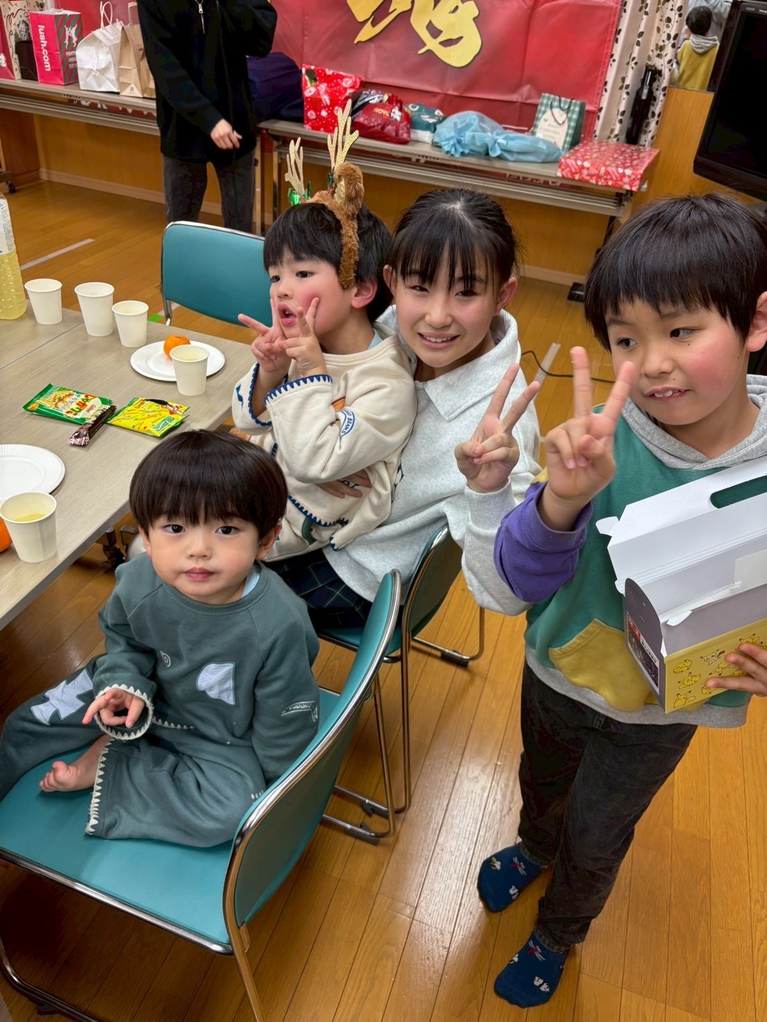 保護者の皆様が準備してくれたプレゼントをビンゴ大会で争奪戦💥